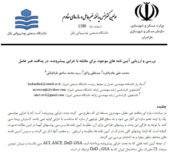 محمد علی هادیانفر مصطفی واثق سید محمدصادق طباطبایی اولین کنفرانس پدافند غیر عامل و سازههای مقاوم اسفندماه 89 دانشگاه صنعتی نوشیروانی بابل