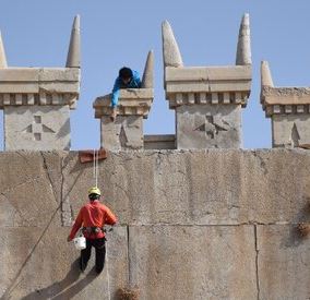پاکسازی دیوارههای تختجمشید با کمک صخرهنوردان
