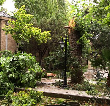 طوفان درختان باغ نگارستان تهران را شکست به دنبال طوفان عصر روز گذشته در تهران تعدادی از درختان مجموعه باغ نگارستان شکستند یا از ریشه کنده شدند. خبرگزاری میراث فرهنگی ـ گروه میراث فرهنگی ـ به دنبال طوفان عصر روز گذشته در تهران تعدادی از درختان مجموعه باغ نگارستان شکستند یا از ریشه کنده شدند. اگرچه شکستن درخت ها به دو عمارت دلگشا و تالار قلمدان (عمارت های داخل باغ) خسارتی وارد نکرد، اما باعث شد تا این مجموعه امروز تعطیل شود. دیوار مسجد امام خمینی بازار ریخت نه تنها درختان نگارستان از دست این طوفان در امان نماندند بلکه چند بنای تاریخی نیز به دنبال طوفانِ روز گذشته آسیب دیدند. به گفته دبیر کمیته پیگیری خانههای تاریخی تهران، دیوار تاریخی مسجد امام خمینی (ره) در خیابان 15 خرداد فرو ریخت و دو نفر زخمی شدند. همچنین موزه صنعتی نیز دچار آسیب جدی شد. سجاد عسگری با توجه به اینکه در سالهای گذشته، یکی از درها و چند پنجرههای موزه استاد صنعتی بهدلیل بیتوجهی مسوولان همیشه باز بود، ورودی موزه استاد صنعتی که پشت ورودی مترو «15 خرداد» قرار دارد، کنده شده است. از آنجاییکه احتمال بروز دوباره این طوفان وجود دارد، احتمال دارد مجسمههای استاد صنعتی نیز آسیب ببینند. به گفته او، ساختمان روزنامه «اطلاعات» در خیابان «خیام» نیز در طوفان تهران تهدید شد؛ با توجه به انجام عملیات ساختمانی در ساختمان کناری که در حال زدن سقف کاذب بود، وزش باد سبب فرو ریختن سقف شد و احتمال ریختن آن روی ساختمان قدیمی روزنامهی «اطلاعات» وجود داشت.