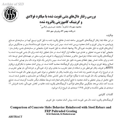 بررسی رفتار دال های بتنیِ تقویت شده با میلگرد فولادی و گریتینگ کامپوزیتی پالترود شده