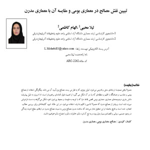 تبیین نقش مصالح در معماری بومی و مقایسه آن با معماری مدرن سال انتشار 1392 محل انتشار همایش ملی معماری، شهرسازی و توسعه پایدار با محوریت ازمعماری بومی تا شهر پایدار زبان مقاله فارسی نویسندگان: لیلا محبی دانشجوی کارشناسی ارشد معماری دانشگاه آزاد اسلامی واحدعلوم وتحقیقات آذربایجان شرقی الهام کاظمی دانشجوی کارشناسی ارشد معماری دانشگاه آزاد اسلامی واحد علوم وتحقیقات آذربایجان شرقی خلاصه مقاله معمولا وقتی صحبت از بناهای سنتی و قدیمی می شود، اولین چیزی که به نظرمی رسد، مصالح بوم آورد آن می باشد چگونگی استفاده از مصالح بومی ومتناسب و هماهنگ با اقلیم و منطقه ای که بنا در آن شکل می گیرد از اهمیت فوق العاده ای برخوردار است، اما امروزه به دلیل پیشرفت دانش بشری درعرصه های معماری، معماری بومی اقصی نقاط دنیا که با توجه به طبیعت و محیط پیرامون خود شکل می گرفته به دست فراموشی سپرده شده است و بیشتر از مصالح مدرن که معمولا تناسبی با اقلیم ندارند، استفاده می شود در این مقاله شیوه کتابخانه ای برای بررسی مطالب انتخاب شده است و نتایج حاصله از این تحقیق نشان می دهد که ساخت مدرن مصالح بومی به نسبت مصالح مدرن در ارتقای سطح امنیت زندگی در وجوه جسمی، روانی و اقتصادی بسیار موثر بوده و به تبعآن فرد سالم، خانواده سالم و اجتماع سالم خواهیم داشت کلمات کلیدی مصالح، معماری بومی، معماری مدرن