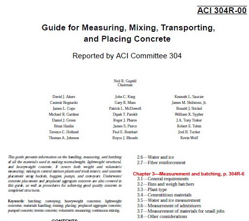 راهنمای آزمون، اختلاط، حمل و ریختن بتن Guide for Measuring, Mixing, Transporting, and Placing Concrete ادامه»