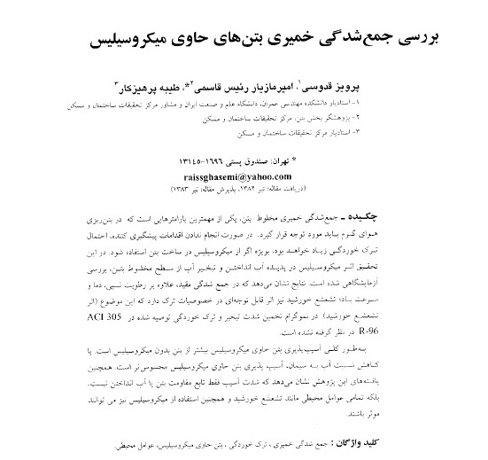 بررسی جمع شدگی خمیری بتن های حاوی میکروسیلیس