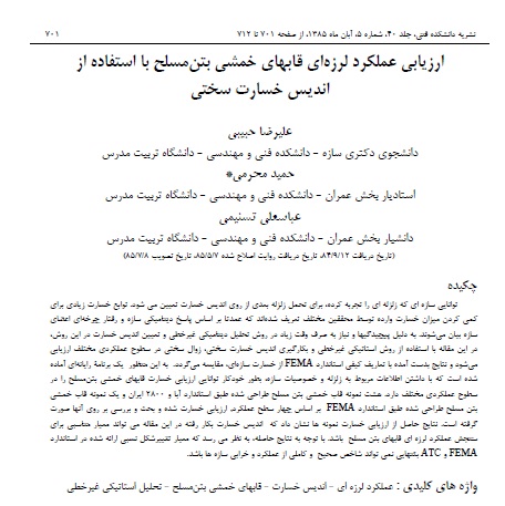 ارزیابی عملکرد لرز های قابهای خمشی بتن مسلح با استفاده ازاندیس خسارت سختی