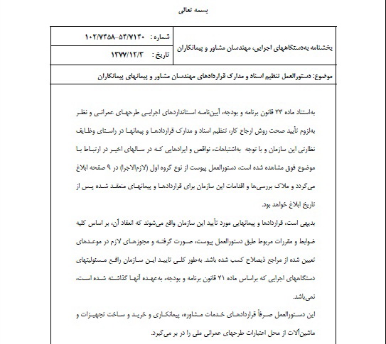 دستورالعمل تنظیم اسنادمهندسین مشاور و پیمانهای پیمانکاران