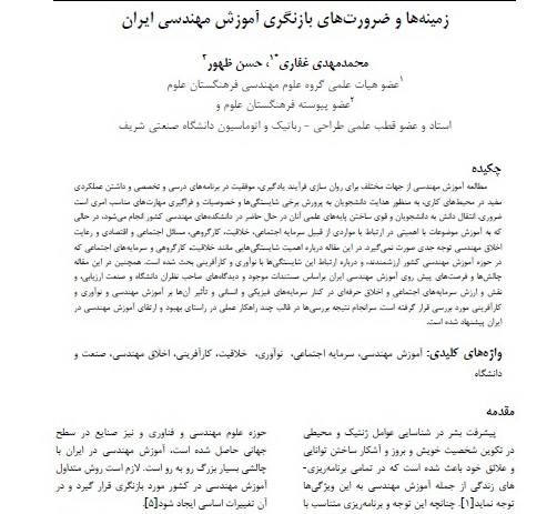 زمینهها و ضرورتهای بازنگری آموزش مهندسی ایران پدیدآورندگان : محمدمهدی غفار، حسن ظهور چکیده : مطالعهی آموزش مهندسی از جهات گوناگون برای روانسازی فرآیند یادگیری، موفقیت در برنامههای درسی و تخصصی و داشتن کارکردی سودمند در محیطهای کاری، بهمنظور هدایت دانشجویان به سوی پرورش پارهای شایستگیها و ویژگیها و فراگیری مهارتهای فراخور، امریست ضروری. انتقال دانش به دانشجویان و نیرومند ساختن پایههای علمی آنها، هماکنون در دانشکدههای مهندسی کشور انجام میپذیرد؛ در حالی که به آموزش موضوعات بااهمیتی در پیوند با مواردی همچون سرمایهی اجتماعی، خلاقیت، کار گروهی، مسائل اجتماعی و اقتصادی و رعایت اخلاق مهندسی، توجه جدی نمیشود. در این مقاله، دربارهی اهمیت شایستگییهایی مانند خلاقیت، توان کار گروهی و سرمایههای اجتماعی که در حوزهی آموزش مهندسی کشور ارزشمندند، و دربارهی پیوند این شایستگیها با نوآوری و کارآفرینی بحث شده است. همچنین، در این مقاله چالشها و فرصتهای پیش روی آموزش مهندسی ایران بر پایهی مستندات موجود و دیدگاههای صاحبنظران دانشگاه و صنعت ارزیابی، و نقش و ارزش سرمایههای اجتماعی و اخلاق حرفهای در کنار سرمایههای فیزیکی و انسانی و تأثیر آنها بر آموزش مهندسی و نوآوری و کارآفرینی، بررسی شده است. سرانجام نیز دستاوردهای این بررسیها در قالب چند راهکار عملی در راستای بهبود و ارتقای آموزش مهندسی در ایران، پیشنهاد شدهاند. کلیدواژهها : اخلاق مهندسی، کارآفرینی، خلاقیت، صنعت و دانشگاه، آموزش مهندسی، نوآوری، سرمایهی اجتماعی. حجم مقاله : 15 صفحه در فرمت PDF.