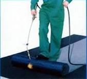 -یک قشر قیر 60/70 مذاب به مقدار مناسب به طور یکنواخت روی آن گسترده و برروی سطح قیر گرم فشار داده می شود ، به طوری که در تمام نقاط کاملا به قیربچسبد.