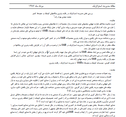 عنوان مقاله: بررسی نقش مدیریت استراتژیک در رقابتپذیری بنگاههای کوچک و متوسط کشور