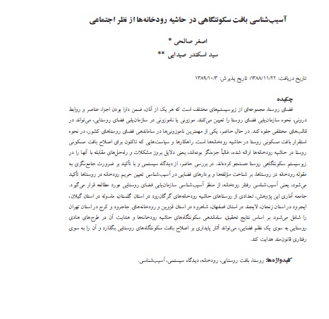 یکی از مهمترین ناموزونیها در ساماندهی فضای روستاهای کشور، در چگونگی استقرار بافت مسکونی روستا در حاشیهی رودخانههاست. در این مقاله، آسیبشناسی رفتار رودخانه، از منظر آسیبشناسی سازمانیابی فضای روستایی بررسی و آشکار شده است که ساماندهی سکونتگاههای حاشیهی رودخانهها و راهبریِ آن در طرحهای هادی روستایی به سوی یک نظم و سامانِ فضایی، میتواند آن را به سوی رفتاری عاری از نابهسامانی هدایت کند.