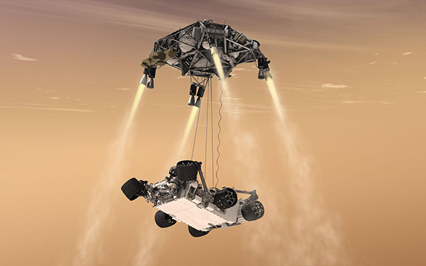 علایم ارسالی این مریخنورد که پس از تاخیر 14 دقیقهای به زمین رسید، حاکی از آن است که روبات 1000 کیلوگرمی کنجکاوی به سلامت در دامنه کوه 5500 متری دهانه گیل فرود آمده است. کارشناسان ناسا پس از آزمایش ابزارهای این مریخنورد، ماموریت دوساله آن را برای جستجوی ارگانیسمهای زنده شبیه به زیست زمینی آغاز خواهند کرد.